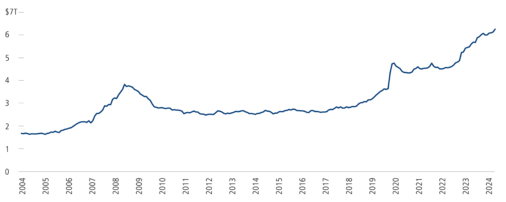 On the one hand, the Fed has begun to loosen policy to stimulate growth now that the inflation rate is down and some signals of a slowing economy have materialized. A consequence of Fed rate cuts means investors, who had $6.3 trillion tucked under money market fund mattresses in September, may be prompted to seek higher yields elsewhere.