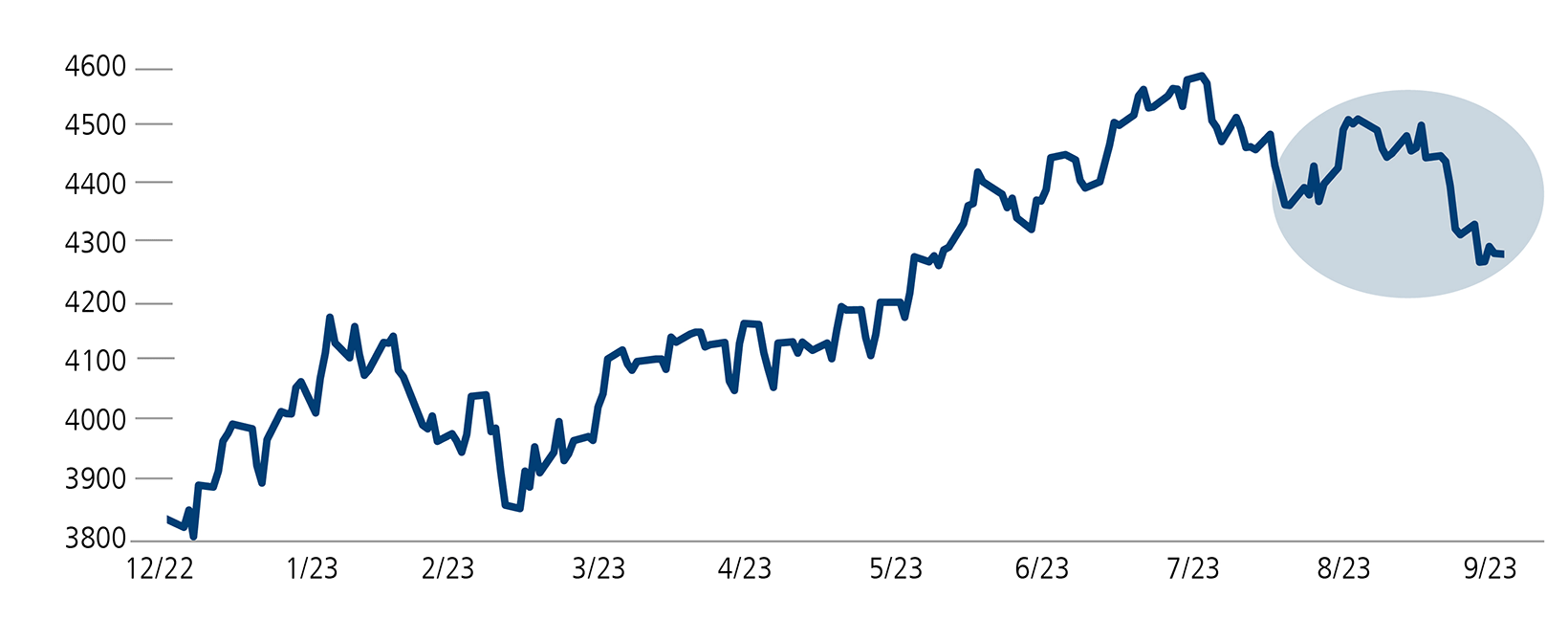 Markets are forward looking, as are our teams. We see many signs pointing to slower growth and increasing risks across sectors. Global manufacturing data is trending down, and rising fuel prices are putting significant pressure on a wide variety of companies and many households. Meanwhile, retailers will likely struggle as the nest eggs that consumers amassed during the pandemic dwindle and student loan repayments start again. Fiscal policy uncertainty, already elevated (as we saw once again with this latest round of debt ceiling negotiations), will no doubt intensify as the US presidential election approaches. Against this backdrop, we expect sideways moving markets, rotation, and short-term volatility to continue.